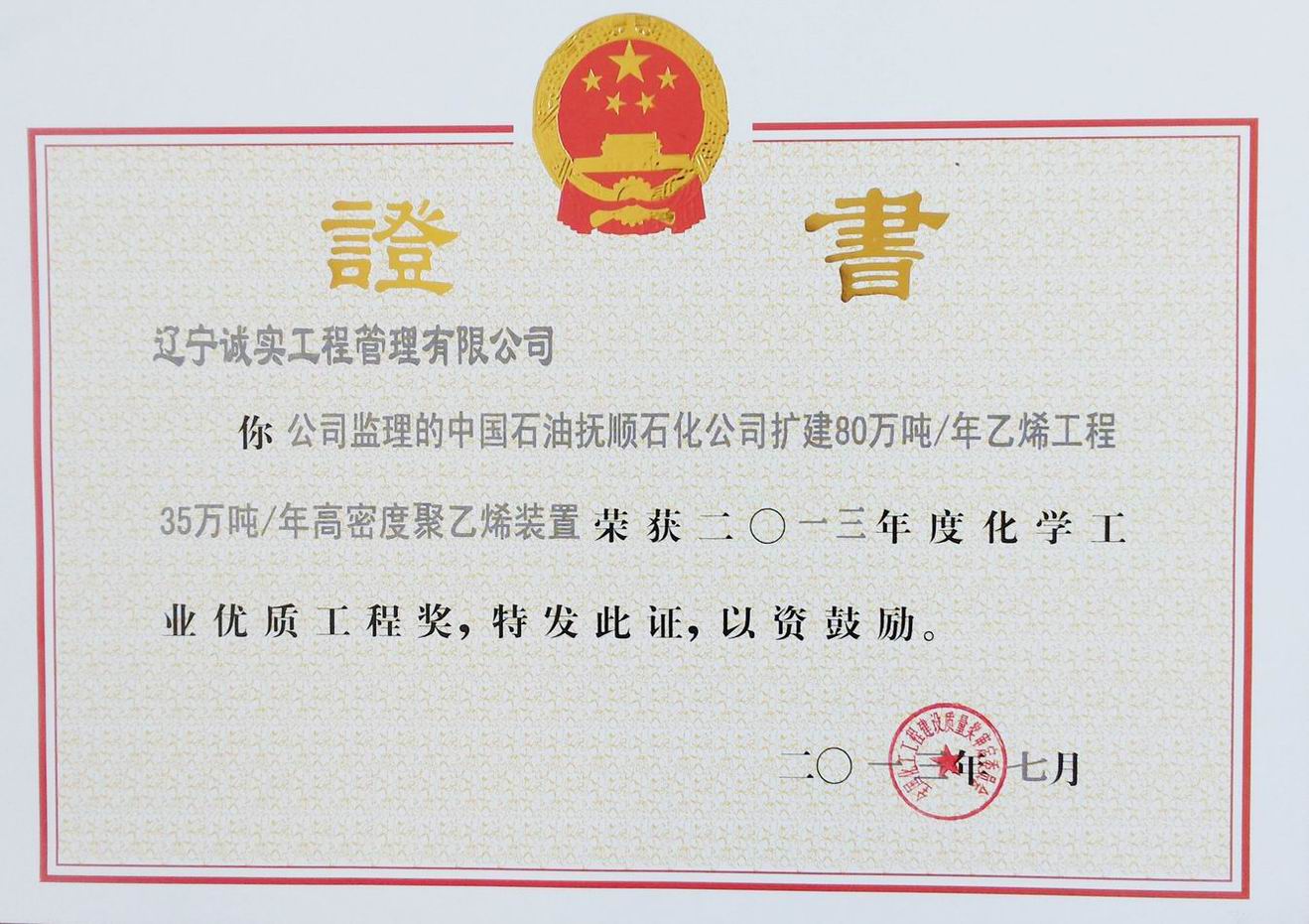 2013年化學(xué)工業(yè)優(yōu)質(zhì)工程獎(jiǎng)(撫順石化擴(kuò)建)