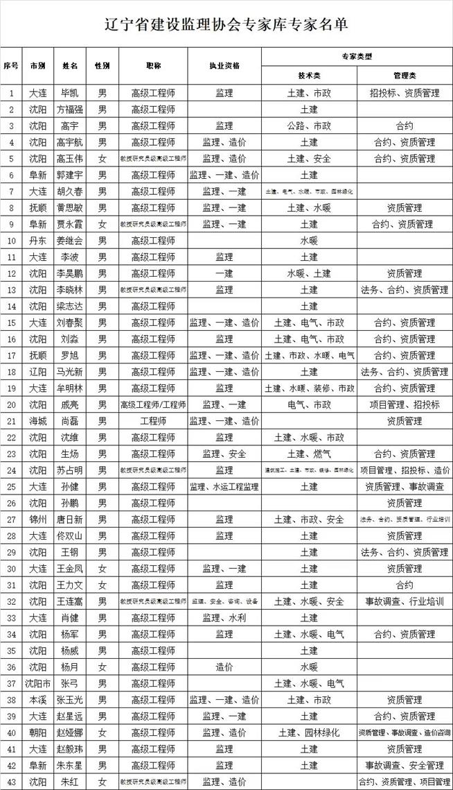 為滿足我省建設(shè)工程監(jiān)理行業(yè)改革發(fā)展需要,省建設(shè)監(jiān)理協(xié)會(huì)決定建立專家?guī)觳⒊闪<椅瘑T會(huì),此次聘請(qǐng)全省專家共計(jì)43人加入專家?guī)。我公司高?jí)工程師黃思敏被聘為資質(zhì)管理(管理類)、土建、水暖(技術(shù)類)專家。此次專家?guī)斓某闪,將充分發(fā)揮行業(yè)專家的作用,加強(qiáng)協(xié)會(huì)技術(shù)力量、為我省監(jiān)理行業(yè)服務(wù),維護(hù)行業(yè)市場(chǎng)各方面的合法權(quán)益。而黃思敏同志也將帶著“誠(chéng)實(shí)精神、誠(chéng)實(shí)技術(shù)”為我省監(jiān)理行業(yè)貢獻(xiàn)力量!