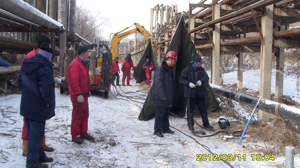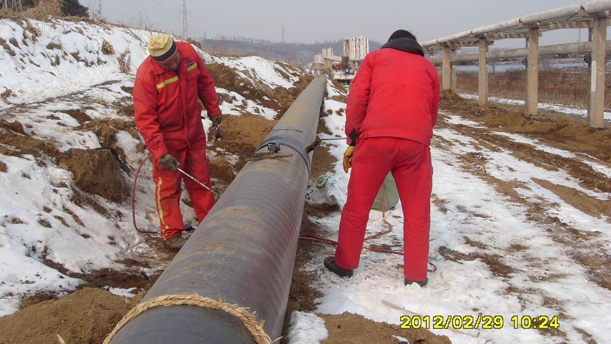 監(jiān)理人員檢查管線補(bǔ)口質(zhì)量